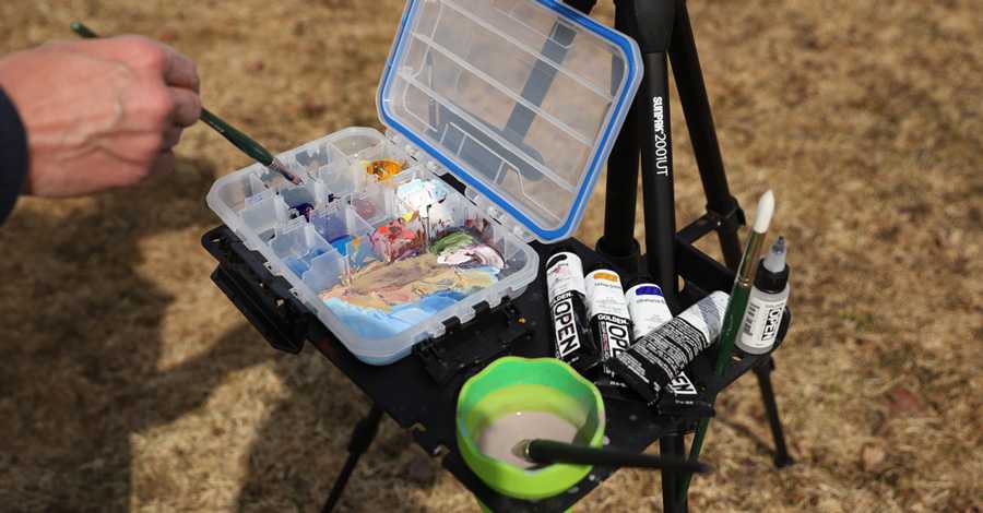 By simply covering a non-absorbent palette, such as an enameled butcher tray, or placing your palette in an enclosed storage container, even wet mixtures of OPEN Acrylics will stay soft and useable for many days if not weeks. If areas feel tacked up, small additions of OPEN Thinner should easily revive them.